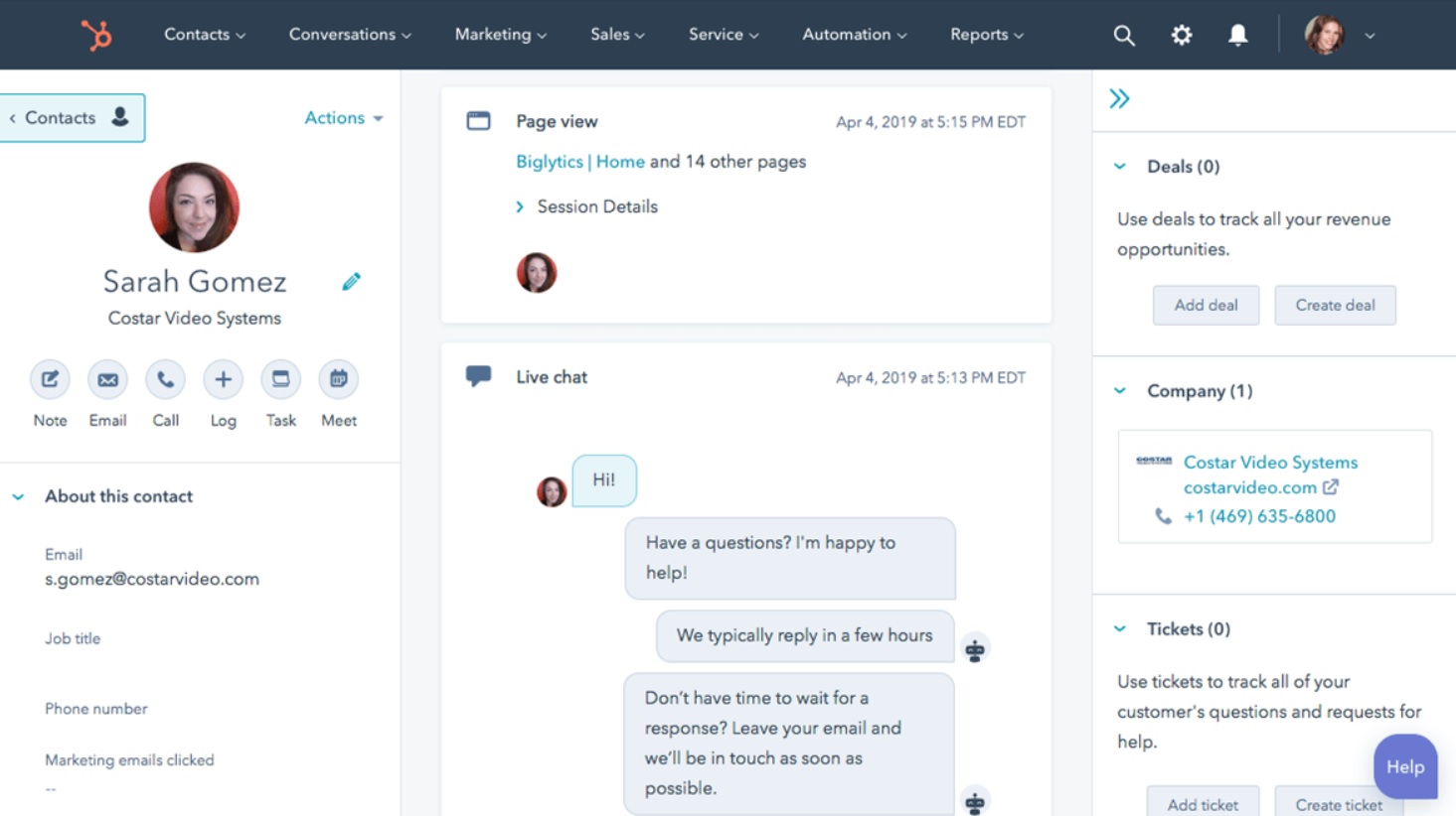 HubSpot provides a comprehensive CRM platform that includes a single customer view. Users can use marketing, sales, service, and website management products in order to grow their businesses.